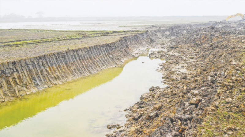 নওগাঁয় ফসলি জমি গিলে খাচ্ছে পুকুর
